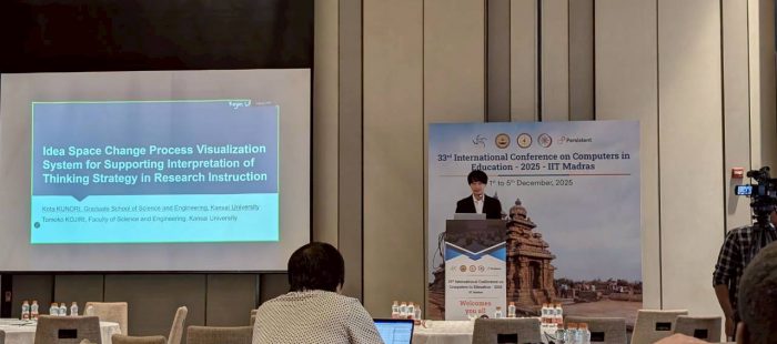 ようこそ、小尻研へ! 関西大学システム理工学部電気電子情報学科の知識情報システム研究室(小尻研究室)のホームページです。 小尻研究室でどんな研究を、どんなことをしているのか説明していきます。是非、参考にしてみてください。 新着情報 2026年3月21日 NEW! JSiSE 第6回研究会@静岡産業大学 2026年3月9日 The 9th International Symposium on Electrical Engineering and Computer Science 台湾,中原大学 2026年2月19日 2/18 修論審査会 2026年1月19日 教育システム情報学会(JSiSE)研究会@とくぎんトモニプラザ 2025年12月9日 33rd International Conference on Computers in Education (ICCE2025) in India 2025年10月14日 第36回教育・学習支援システム若手の会(2025) 2025年9月30日 LOIS グッドプレゼンテーション賞受賞 2025年9月24日 第24回情報科学技術フォーラム(FIT2025)教育工学研究会(ET)ライフインテリジェンスとオフィス情報システム研究会(LOIS)@北海道科学大学 2025年9月9日 ゼミ旅行に行きました 2025年9月7日 第50回教育システム情報学会全国大会@早稲田大学
